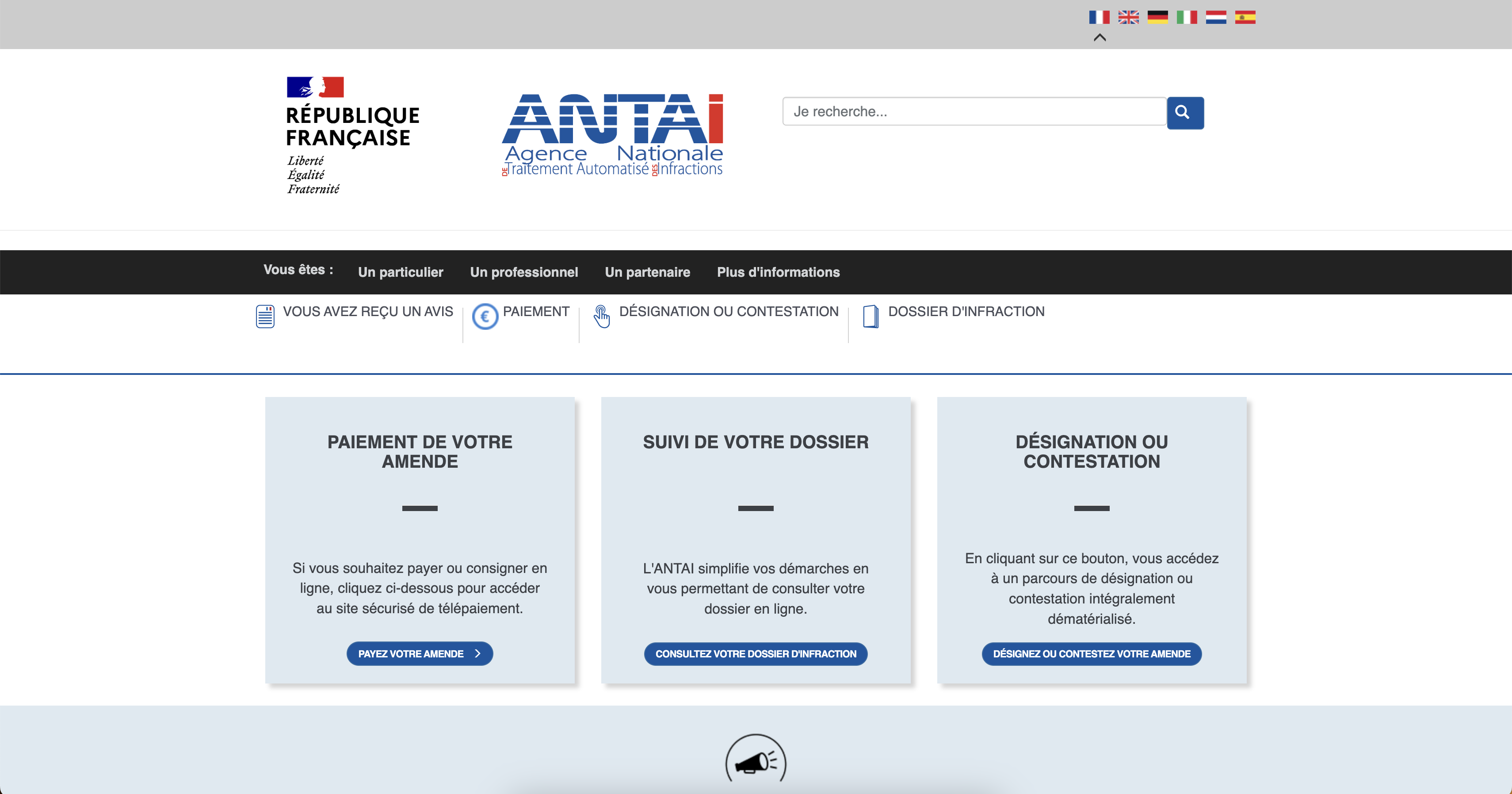 - Vérification en ligne : Vous pouvez vérifier l'existence d'une amende en ligne sur le site de l'ANTAI avec votre numéro d'immatriculation.